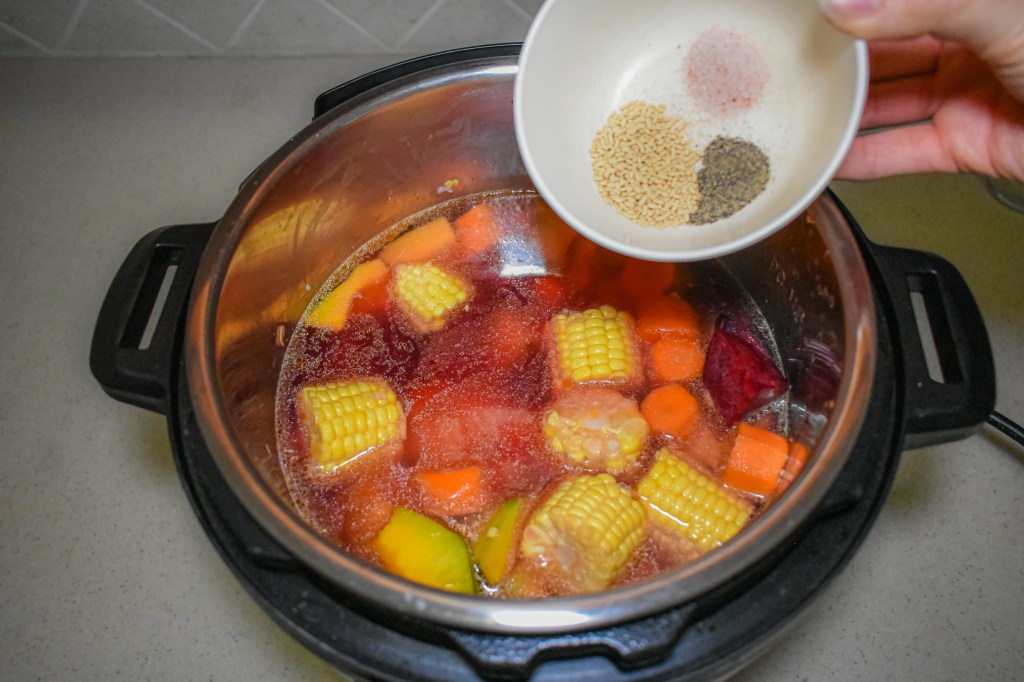 - Since beets take longer to cook than the other veggies, it’s best to steam them until they’re soft before adding with the rest into the pot (Classic version only). Without steaming, the cooking time will take longer about 25-30 min vs. it would take 15-20 min to cook with steamed beets. On the other hand, you don’t have to steam for the Instant Pot version.